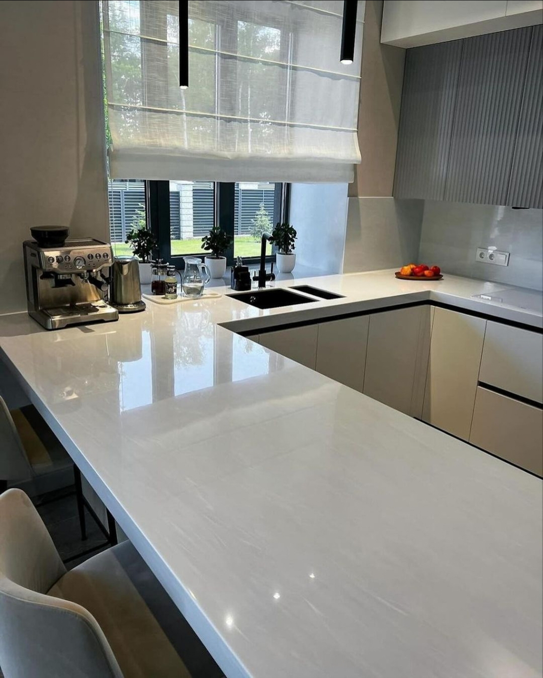 While overall designs are calming, kitchen islands are becoming subtle statement pieces. In 2026, this does not mean bold colors or extreme contrasts, but rather thoughtful variation. A slightly deeper tone, enhanced veining, or a different finish on the island countertop adds interest without breaking harmony.